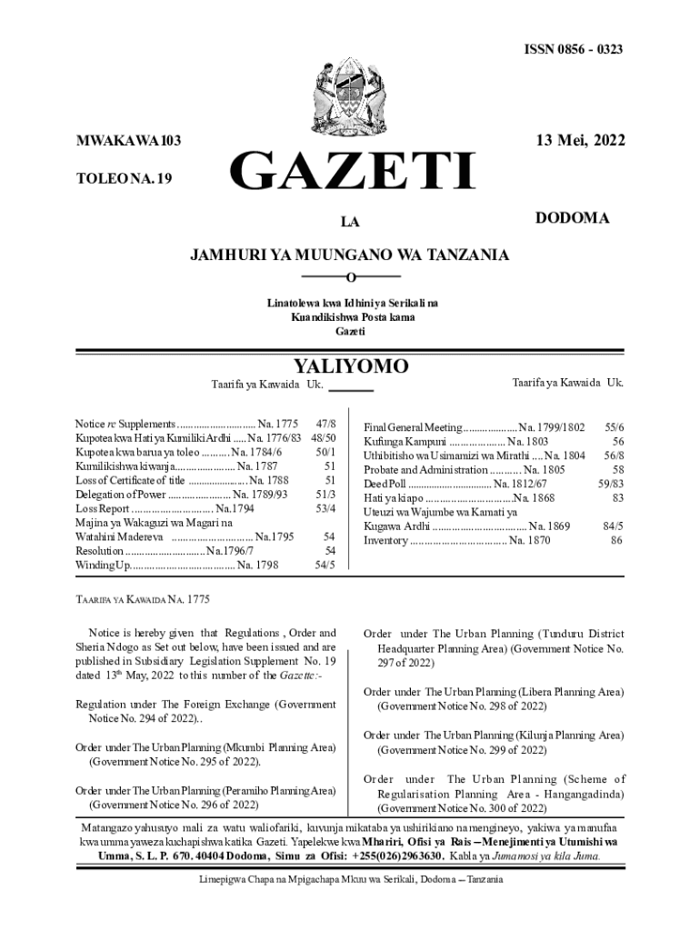 ISSN 0856 0323MWAKA WA 103GAZETITOLEO NA. 1913 Ma, 2022DODOMALAJAMHURI YA MUNDANE WA TANZANIA