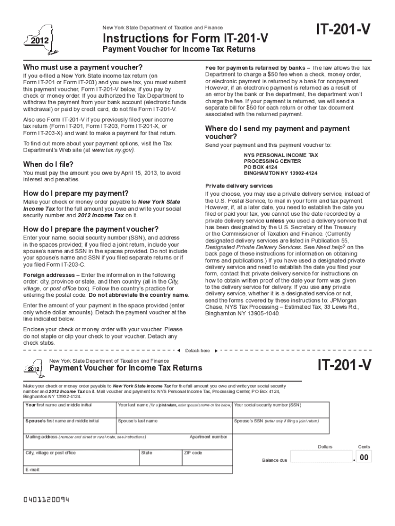 Get the free Instructions for Form IT-201-V - Tax.NY.gov - New York State