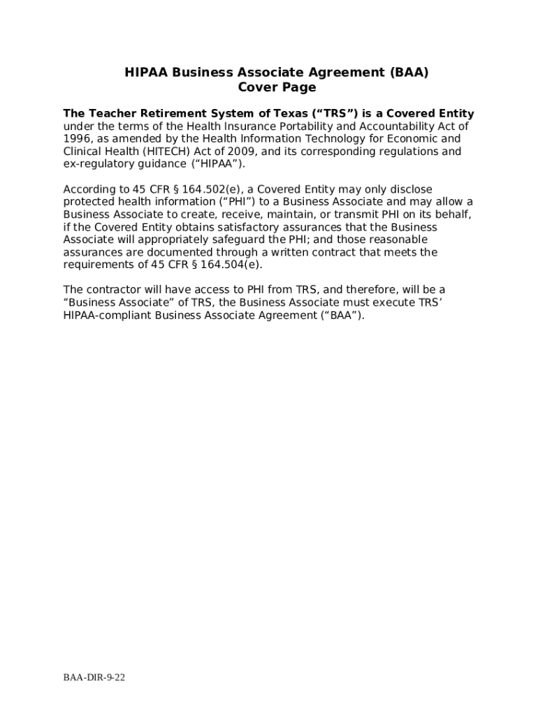 Business Associate Agreement (BAA) GeneralDIR Vendors template instructions