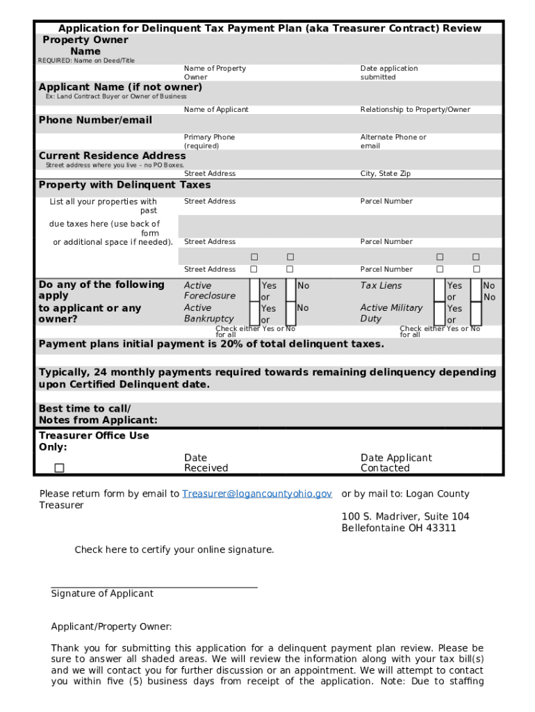 How to fill out Application for Delinquent Tax Payment Plan (aka ...