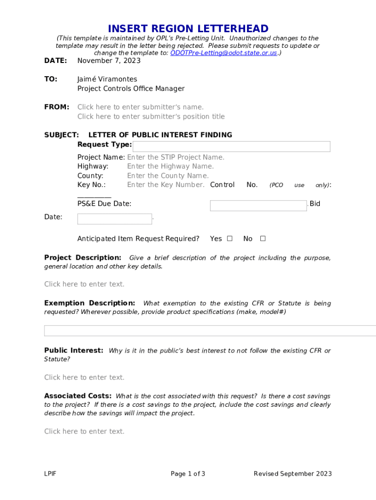 Instructions for the form LPIF Template