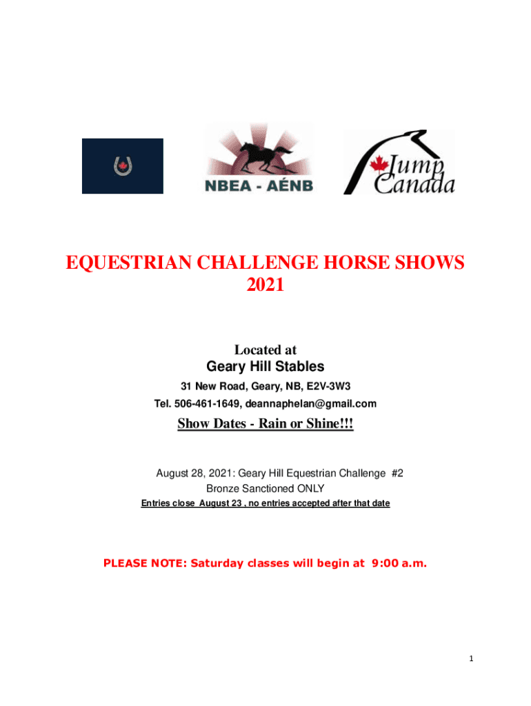 Tel. 5064611649, deannaphelan@gmail.comShow Dates Rain or Shine!!! August 28, 2021: Gear Hill Equestrian