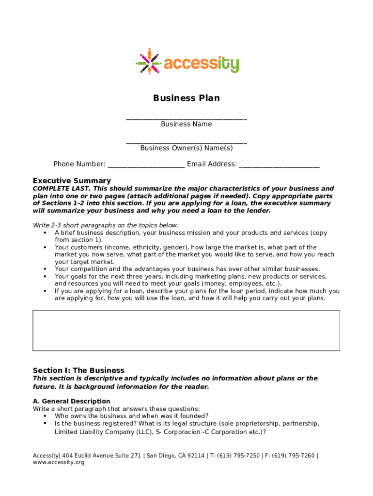 What is How to Write a Business Plan in 9 Steps (2024) Form?