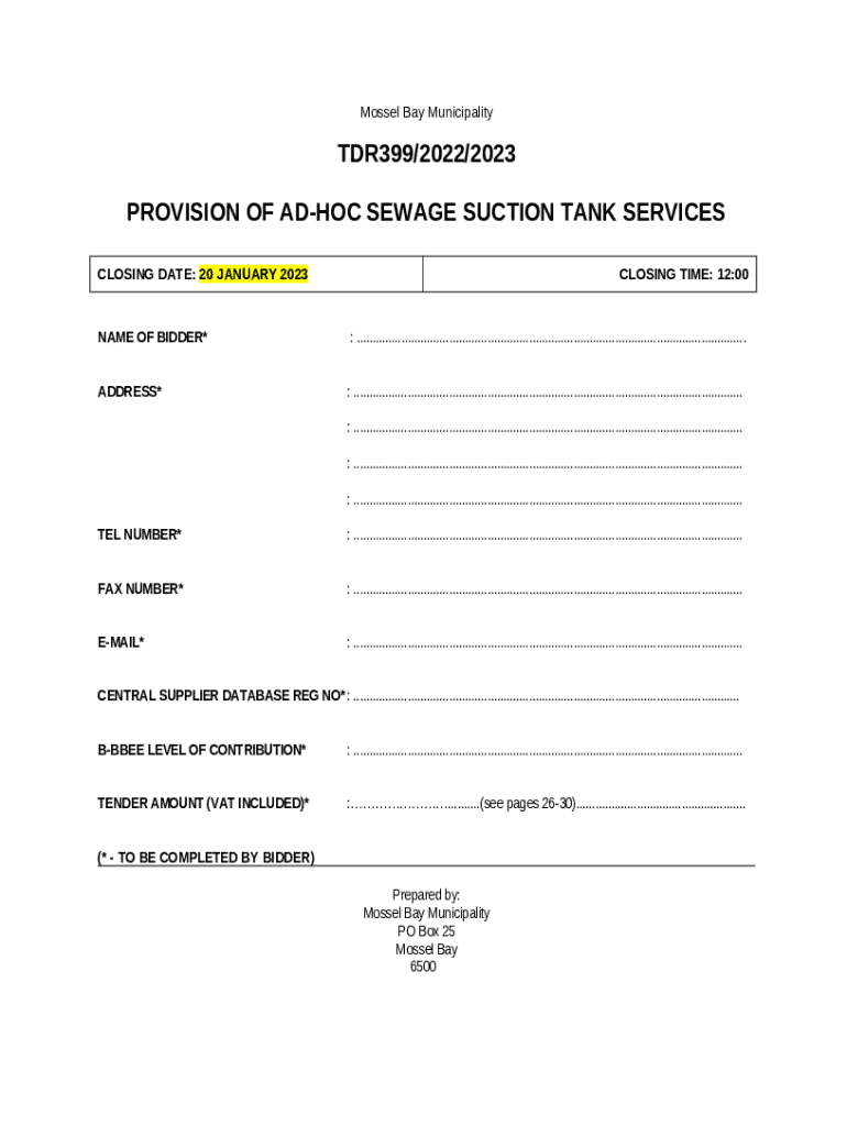 The North Dakota Septic Pumper Manual - mosselbay gov is a Word document that has to be filled-out and signed for specified purposes. Next, it is provided to the relevant addressee in order to provide certain info of any kinds. The completion and signing is available in hard copy by hand or using a suitable application e. g. PDFfiller. These services help to send in any PDF or Word file without printing out. While doing that, you can customize it for your needs and put an official legal digital signature. Once you're good, the user sends the North Dakota Septic Pumper Manual - mosselbay gov to the respective recipient or several ones by email or fax. PDFfiller includes a feature and options that make your Word form printable. It offers a variety of options when printing out. It doesn't matter how you deliver a form after filling it out - in hard copy or by email - it will always look professional and firm. To not to create a new editable template from the beginning again and again, turn the original document into a template. After that, you will have a rewritable sample.