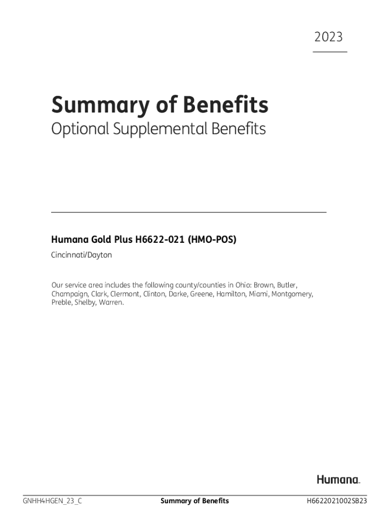 Optional Supplemental BenefitsHumana Gold Plus H6622021 (HMO POS)