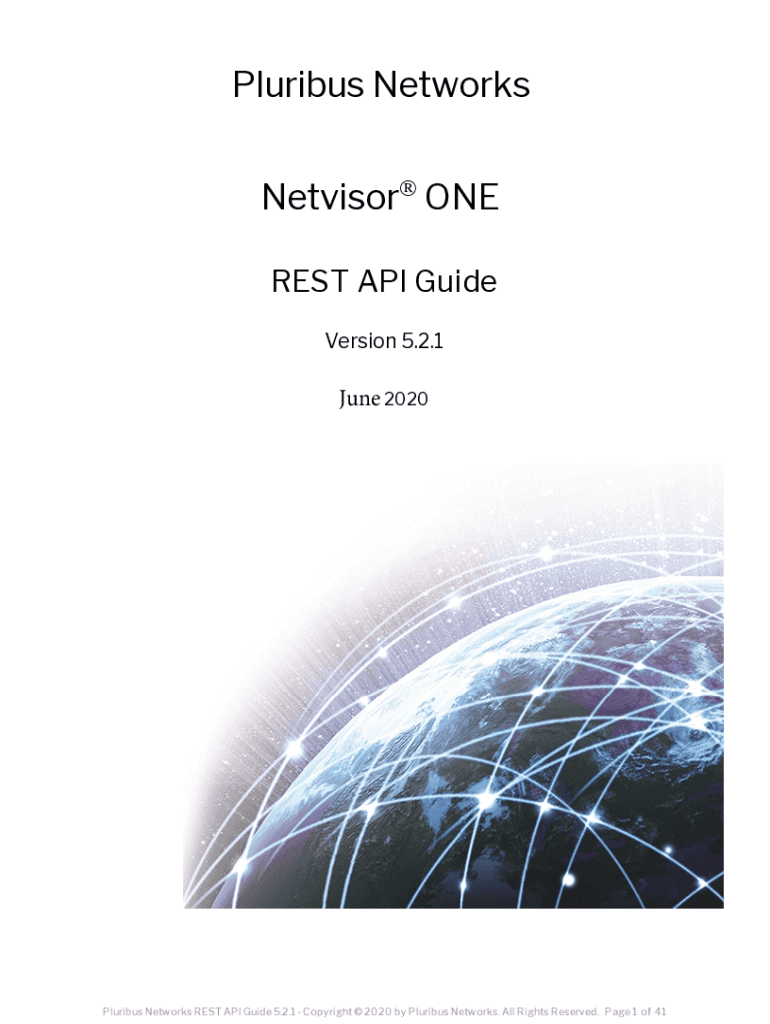 Pluribus Networks Netvisor ONE REST API Guide Version 5.2.1June 2020Pluribus Networks REST API Guide 5.2.1 Copyright 2020 by Pluribus Networks. All Rights Reserved. Page 1 of 41Table of Contents Legal