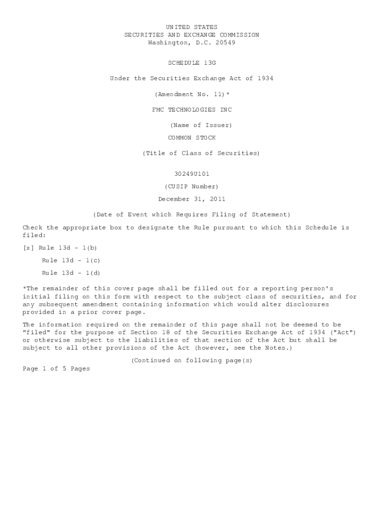 UNITED STATES SECURITIES AND EXCHANGE COMMISSION Washington, D.C. 20549 SCHEDULE 13G Under the Securities Exchange Act of 1934 (Amendment No. 11)* FMC TECHNOLOGIES INC (Name of Issuer) COMMON STOCK