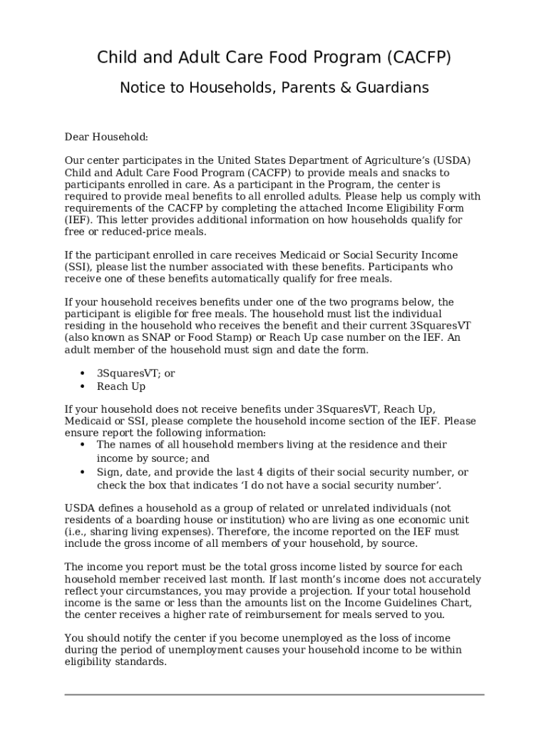 Notice to Households Non-Pricing Adult Day Centers - education vermont template instructions