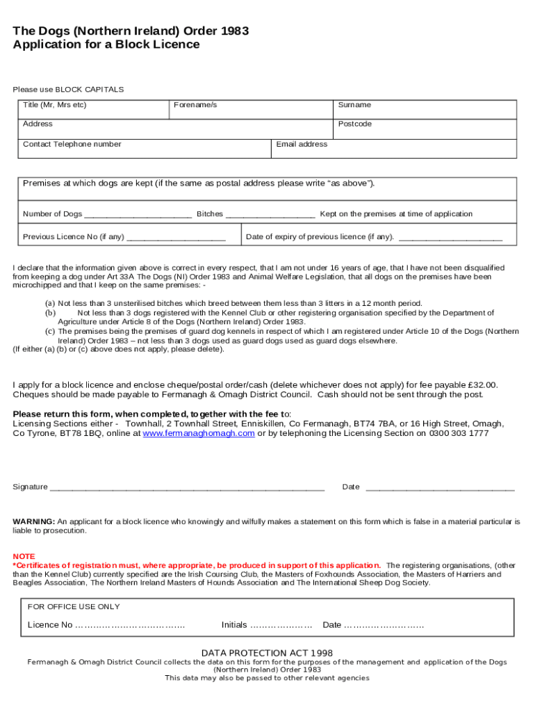 The Download a Dog Licence Application for posting is a writable document that can be completed and signed for certain needs. Next, it is provided to the relevant addressee in order to provide specific details of certain kinds. The completion and signing is available or with a trusted tool e. g. PDFfiller. Such tools help to send in any PDF or Word file online. It also lets you edit its appearance according to the needs you have and put an official legal electronic signature. Once you're good, you send the Download a Dog Licence Application for posting to the recipient or several of them by email or fax. PDFfiller offers a feature and options that make your template printable. It has different settings for printing out. It doesn't matter how you will file a document - in hard copy or electronically - it will always look neat and firm. In order not to create a new document from scratch all the time, turn the original form into a template. After that, you will have an editable sample.