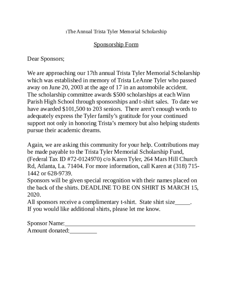 17th Annual Trista Tyler Memorial Scholarship Now ... template instructions