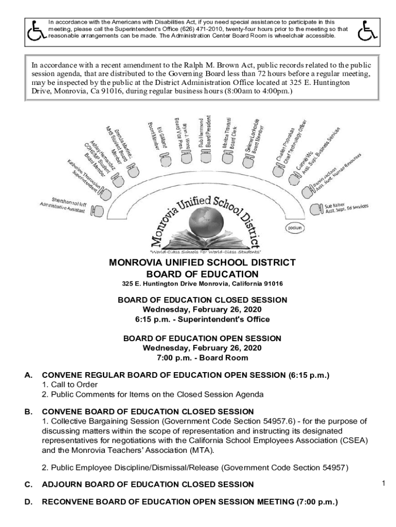 In accordance with the Americans with Disabilities Act, if you need special assistance to participate in this meeting, please call the Superintendent\'s Office (626) 4712010, twenty four hours prior