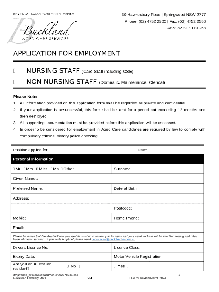 The Buckland Aged Care Services - Springwood is a fillable form in MS Word extension that should be submitted to the required address in order to provide some information. It must be completed and signed, which can be done in hard copy, or with the help of a particular solution such as PDFfiller. This tool lets you fill out any PDF or Word document right in the web, customize it depending on your purposes and put a legally-binding e-signature. Once after completion, user can send the Buckland Aged Care Services - Springwood to the appropriate recipient, or multiple recipients via email or fax. The template is printable too thanks to PDFfiller feature and options proposed for printing out adjustment. Both in digital and in hard copy, your form will have got neat and professional appearance. You can also save it as the template for later, there's no need to create a new document from the beginning. All that needed is to amend the ready document.