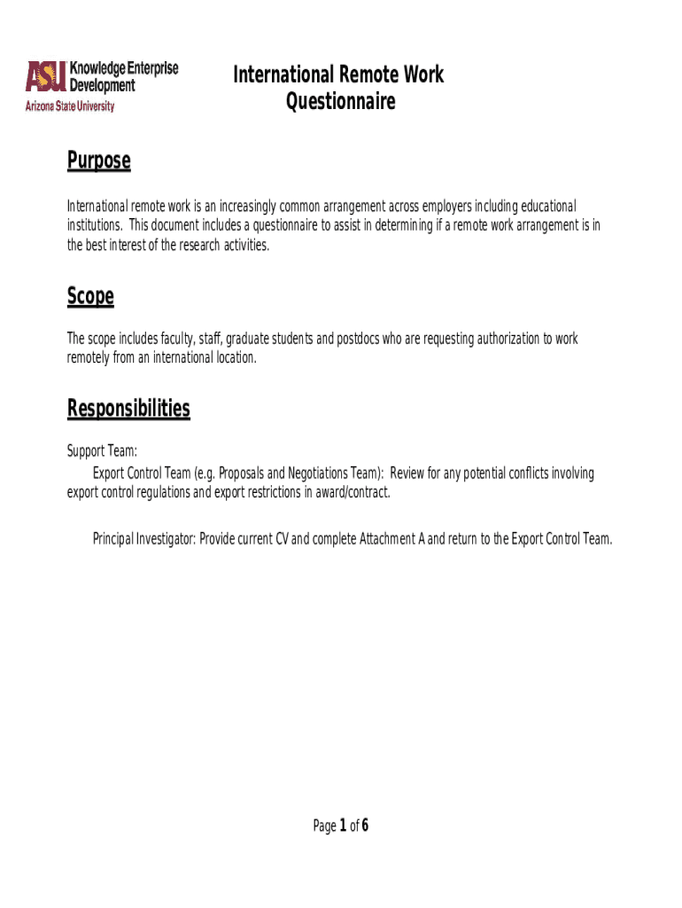 Instructions for the International remote work is an increasingly common arrangement across employers including educational institutions - researchadmin asu form