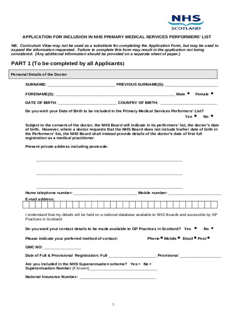 Frequently asked questions about the form application for inclusion in nhs primary medical services ...