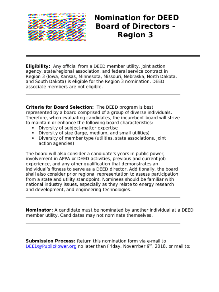 Instructions for the Nomination for DEED Board of Directors - Region 3 form