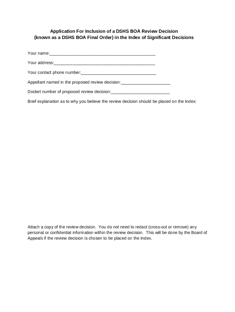 Template Application For Inclusion of a Review Decision in the Index. ... instructions