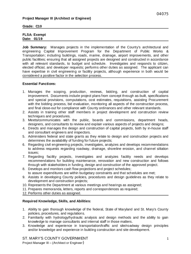 What is BGS Buildings Project Manager III - State of Vermont Careers Form?