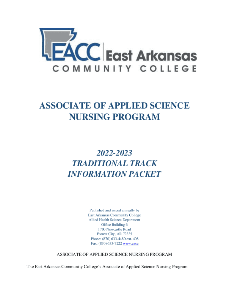 ASSOCIATE OF APPLIED SCIENCE NURSING PROGRAM20222023 TRADITIONAL TRACK INFORMATION PACKETPublished and issued annually by East Arkansas Community College Allied Health Science Department Office Building