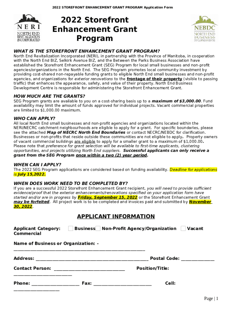 Instructions for the form North End Community Renewal Corporation (NECRC)'s post