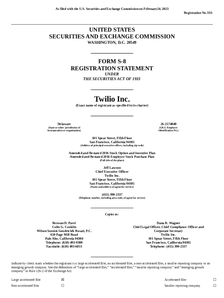 The S-8 for Goosehead Insurance INC filed 03/10/2023 is a Word document which can be completed and signed for specific purposes. Then, it is furnished to the actual addressee to provide specific info of any kinds. The completion and signing may be done in hard copy by hand or via a trusted application e. g. PDFfiller. Such applications help to send in any PDF or Word file without printing out. It also lets you customize it according to your requirements and put a valid e-signature. Upon finishing, you send the S-8 for Goosehead Insurance INC filed 03/10/2023 to the recipient or several ones by email and even fax. PDFfiller offers a feature and options that make your template printable. It has various settings when printing out appearance. It does no matter how you will distribute a document - in hard copy or electronically - it will always look well-designed and firm. In order not to create a new file from the beginning again and again, turn the original file as a template. Later, you will have a rewritable sample.
