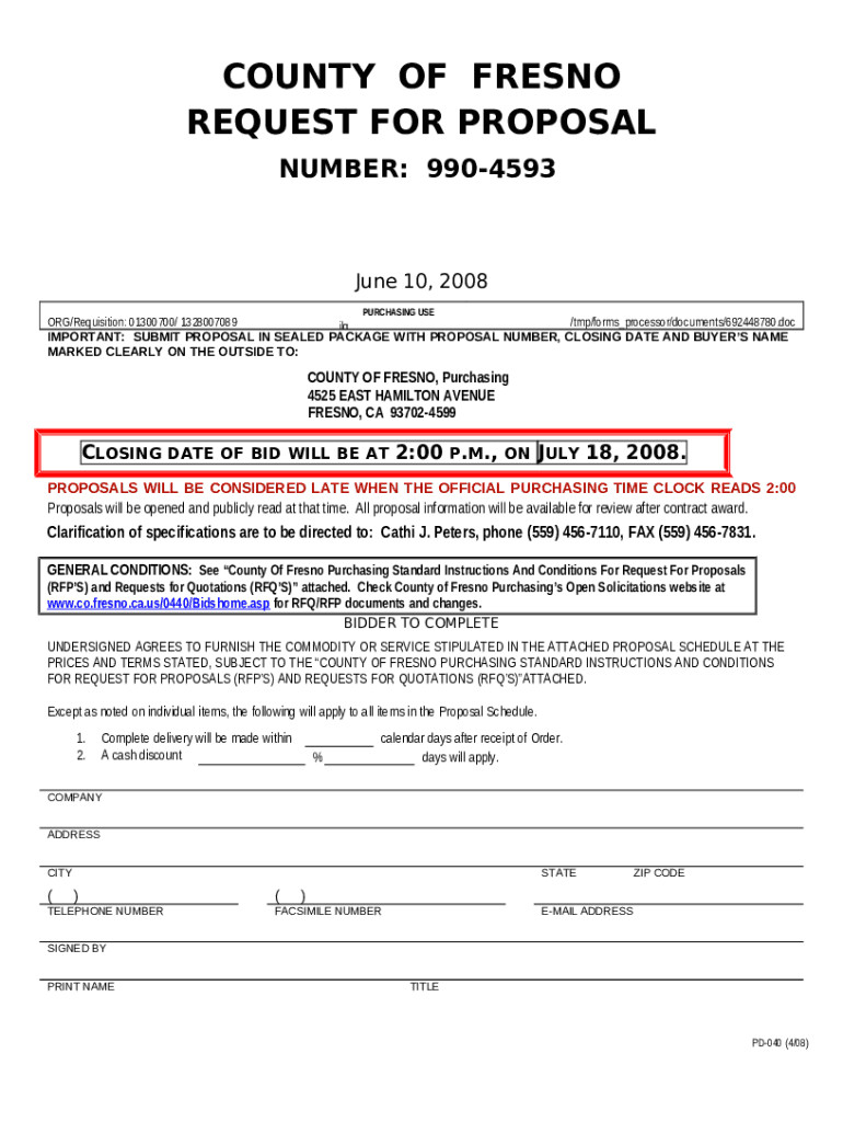 The NUMBER:990-4593 - www2 co fresno ca is a document which can be completed and signed for specified needs. Next, it is provided to the actual addressee to provide specific details of any kinds. The completion and signing may be done manually or via an appropriate service e. g. PDFfiller. These services help to send in any PDF or Word file without printing out. It also lets you customize it depending on your requirements and put a valid electronic signature. Once finished, the user sends the NUMBER:990-4593 - www2 co fresno ca to the recipient or several ones by mail and even fax. PDFfiller is known for a feature and options that make your Word template printable. It includes a variety of options when printing out. It does no matter how you'll file a form - in hard copy or by email - it will always look professional and firm. In order not to create a new writable document from the beginning all the time, make the original Word file into a template. After that, you will have an editable sample.
