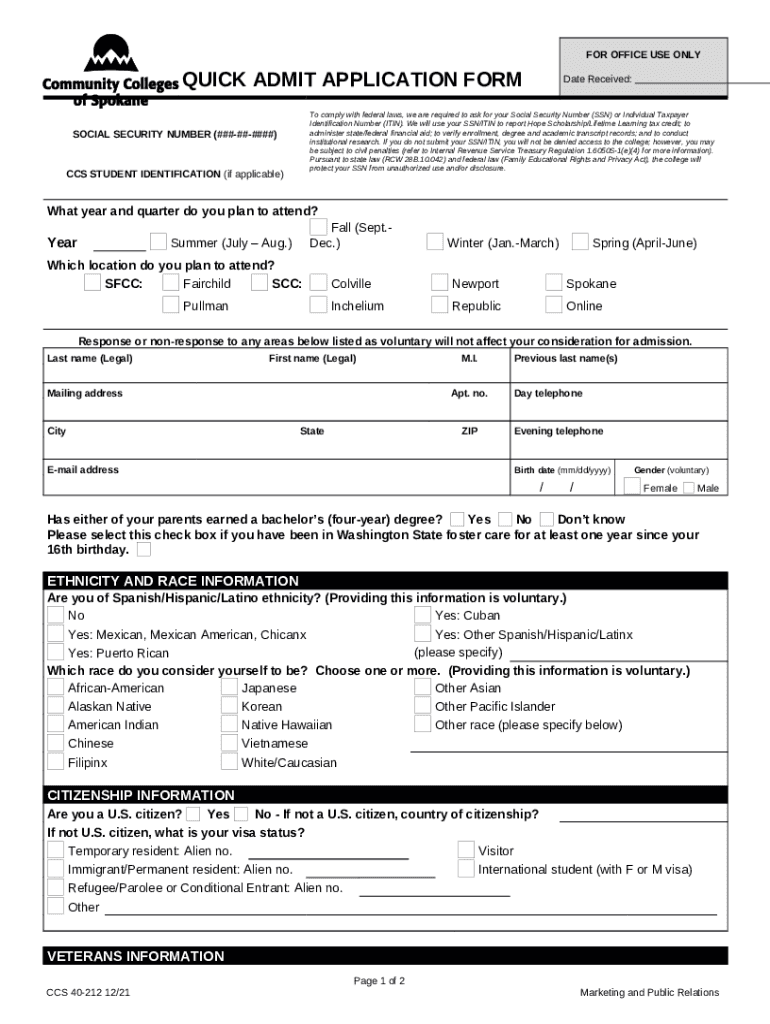 quick admit application - Community Colleges of Spokane: frequently asked questions