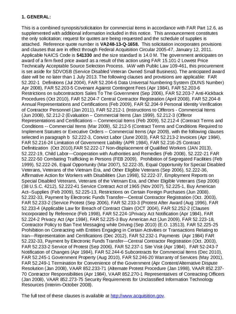 How to fill out This is a combined synopsis/solicitation for ... - VA Vendor Portal