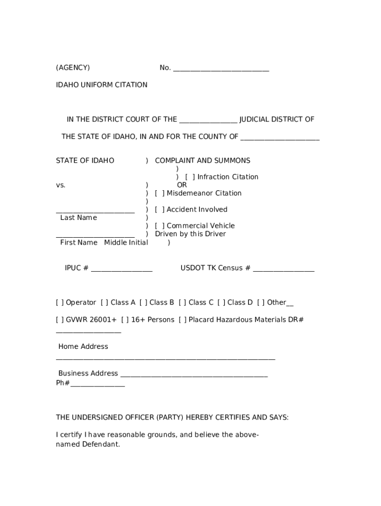 The I.M.C.R. 5. Uni citation - Issuance - Service - - isc idaho is a document you can get completed and signed for specific needs. Next, it is provided to the relevant addressee to provide specific info of any kinds. The completion and signing may be done manually or with a suitable application like PDFfiller. These applications help to send in any PDF or Word file online. While doing that, you can customize it depending on your needs and put an official legal electronic signature. Once done, the user ought to send the I.M.C.R. 5. Uni citation - Issuance - Service - - isc idaho to the recipient or several of them by email and also fax. PDFfiller provides a feature and options that make your document of MS Word extension printable. It provides a variety of options when printing out. No matter, how you distribute a document - physically or by email - it will always look neat and firm. In order not to create a new writable document from scratch over and over, turn the original file as a template. Later, you will have a customizable sample.