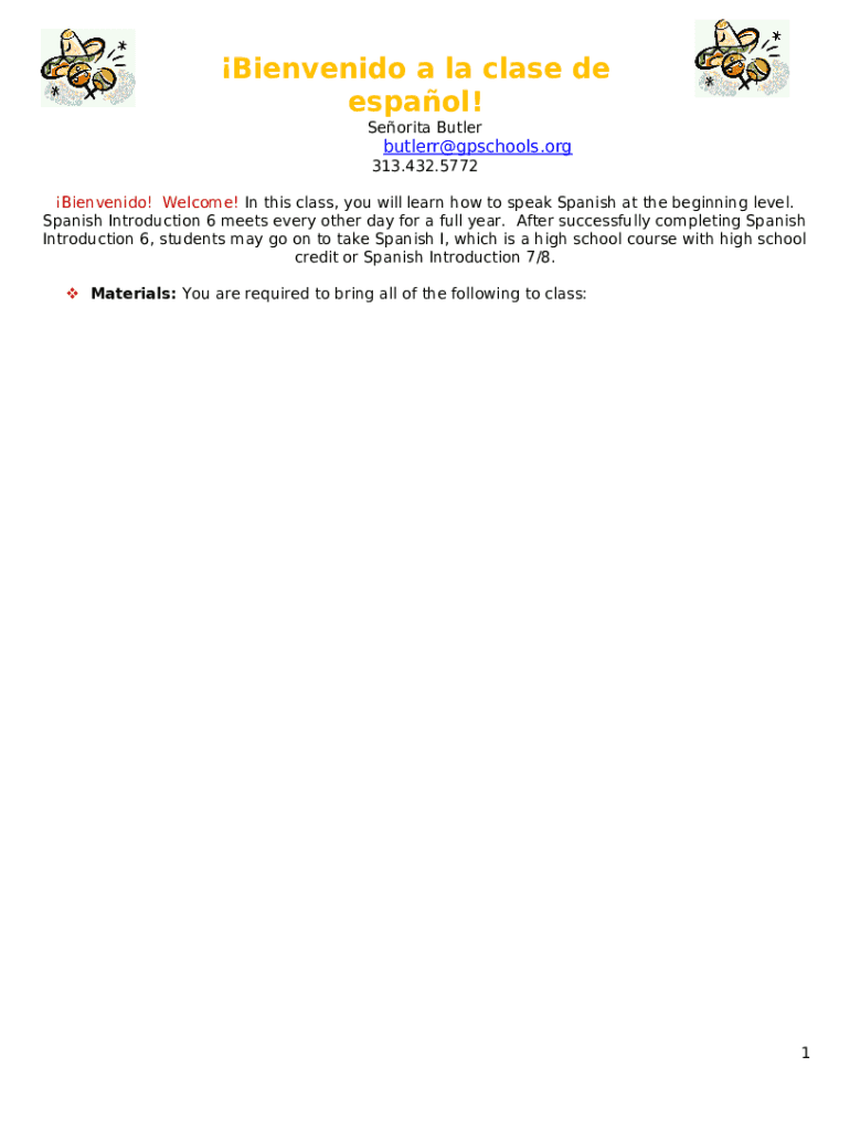 The Bienvenidos de nuevo a la clase de espaol! 7 th Grade ... is a fillable form in MS Word extension which can be completed and signed for certain needs. Next, it is furnished to the relevant addressee to provide specific info of any kinds. The completion and signing can be done or using a suitable application like PDFfiller. Such applications help to fill out any PDF or Word file without printing out. While doing that, you can customize it according to your needs and put a legal e-signature. Upon finishing, the user sends the Bienvenidos de nuevo a la clase de espaol! 7 th Grade ... to the respective recipient or several of them by email or fax. PDFfiller has a feature and options that make your template printable. It provides a number of options when printing out. No matter, how you will file a document - in hard copy or by email - it will always look professional and firm. To not to create a new editable template from scratch again and again, turn the original form as a template. Later, you will have a customizable sample.