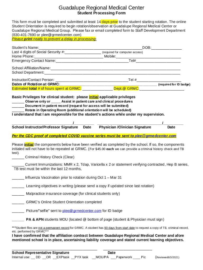 Frequently asked questions about the form Student/Intern Orientation Handbook