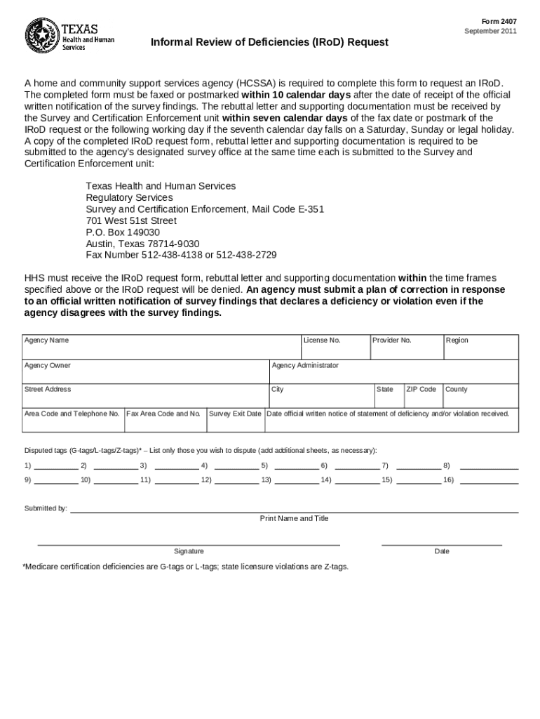 Instructions for the form 2407, Inal Dispute Resolution (IDR) Request
