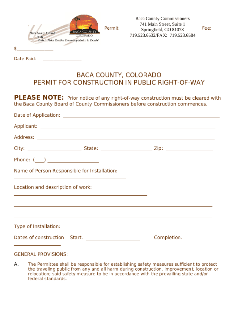 What is sBaca County Colorado Form?