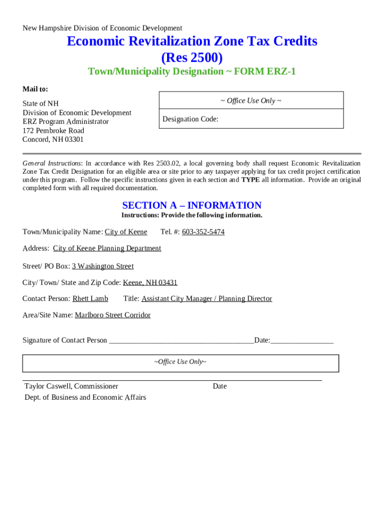 How to fill New Hampshire's Economic Revitalization Zone word template