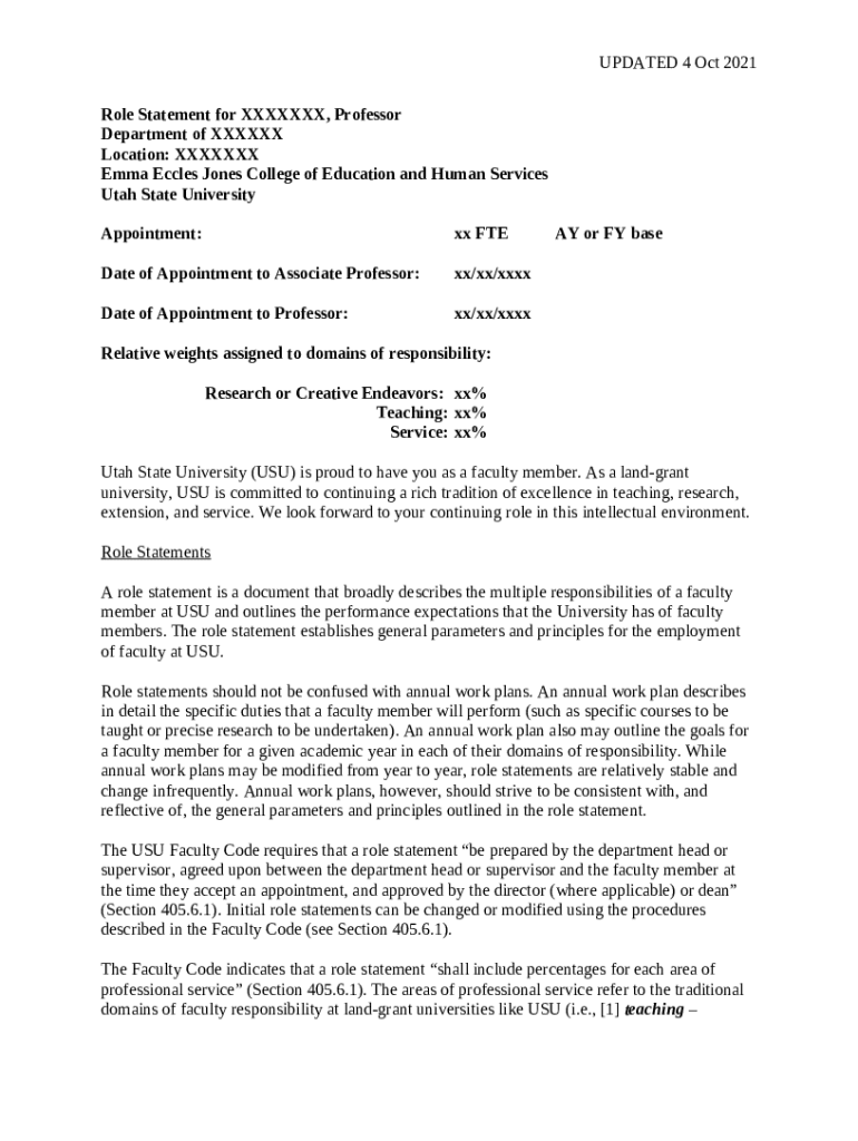 What is Role Statement for XXXXXXX, Assistant Professor with an ... Form?