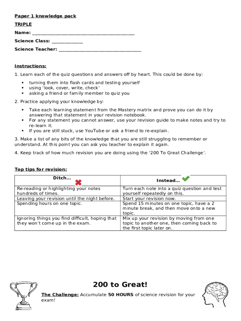 Before to fill out Year 11 Revision Resources MS Word form, make sure that you have prepared enough of necessary information. It is a important part, because some typos can trigger unpleasant consequences from re-submission of the whole word form and filling out with missing deadlines and even penalties. You ought to be especially observative when writing down digits. At first glance, this task seems to be quite easy. However, it is easy to make a mistake. Some use such lifehack as saving their records in a separate file or a record book and then put this information into document's template. However, try to make all efforts and provide valid and genuine info in your Year 11 Revision Resources word form, and check it twice during the process of filling out all required fields. If it appears that some mistakes still persist, you can easily make some more amends while using PDFfiller editing tool and avoid blowing deadlines.