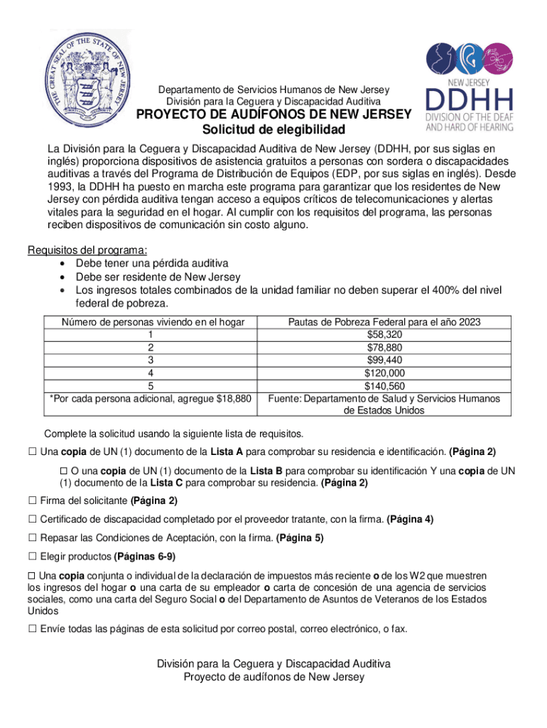 Cualquier persona que cumpla con los requisitos de ingresos y necesidad, y que resida en Nueva Jersey, puede presentar una solicitud para audífonos gratis.