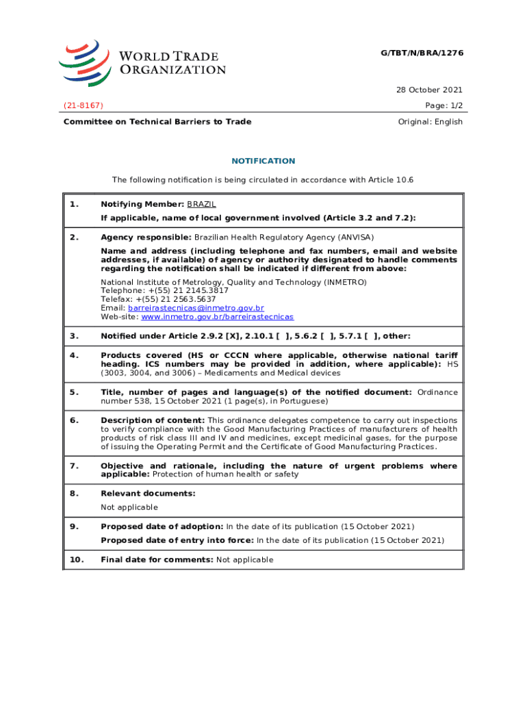 The Agency responsible: Brazilian Health Regulatory Agency (ANVISA) is a fillable form in MS Word extension you can get completed and signed for specific purpose. Then, it is furnished to the actual addressee in order to provide some details of any kinds. The completion and signing is available manually in hard copy or with a trusted tool e. g. PDFfiller. These applications help to submit any PDF or Word file without printing them out. It also allows you to edit its appearance according to your requirements and put an official legal e-signature. Once done, the user sends the Agency responsible: Brazilian Health Regulatory Agency (ANVISA) to the respective recipient or several ones by mail and even fax. PDFfiller provides a feature and options that make your blank printable. It has a number of options when printing out appearance. It doesn't matter how you deliver a form after filling it out - in hard copy or electronically - it will always look neat and firm. To not to create a new editable template from the beginning over and over, turn the original document as a template. Later, you will have a customizable sample.