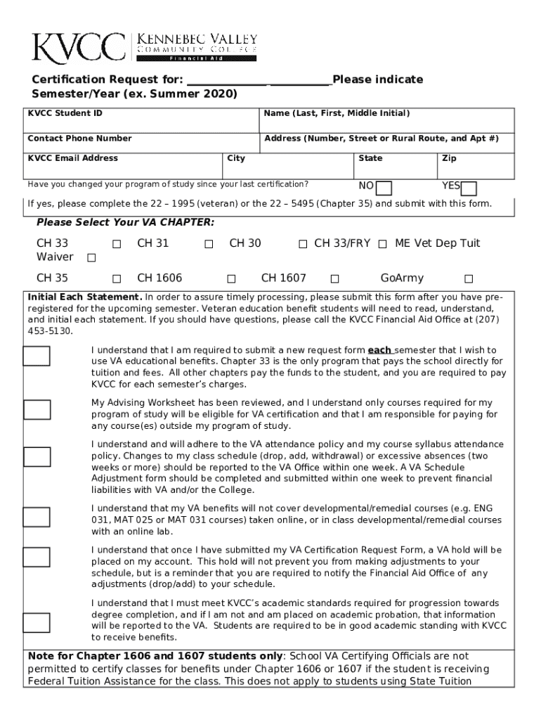 The VA-Certification-Request-.docx is a writable document needed to be submitted to the specific address to provide certain info. It needs to be filled-out and signed, which is possible in hard copy, or via a certain solution such as PDFfiller. This tool lets you fill out any PDF or Word document directly from your browser (no software requred), customize it according to your purposes and put a legally-binding electronic signature. Right away after completion, you can send the VA-Certification-Request-.docx to the relevant individual, or multiple recipients via email or fax. The editable template is printable too from PDFfiller feature and options presented for printing out adjustment. Both in digital and in hard copy, your form should have a neat and professional look. You may also save it as the template to use it later, so you don't need to create a new file over and over. Just customize the ready form.