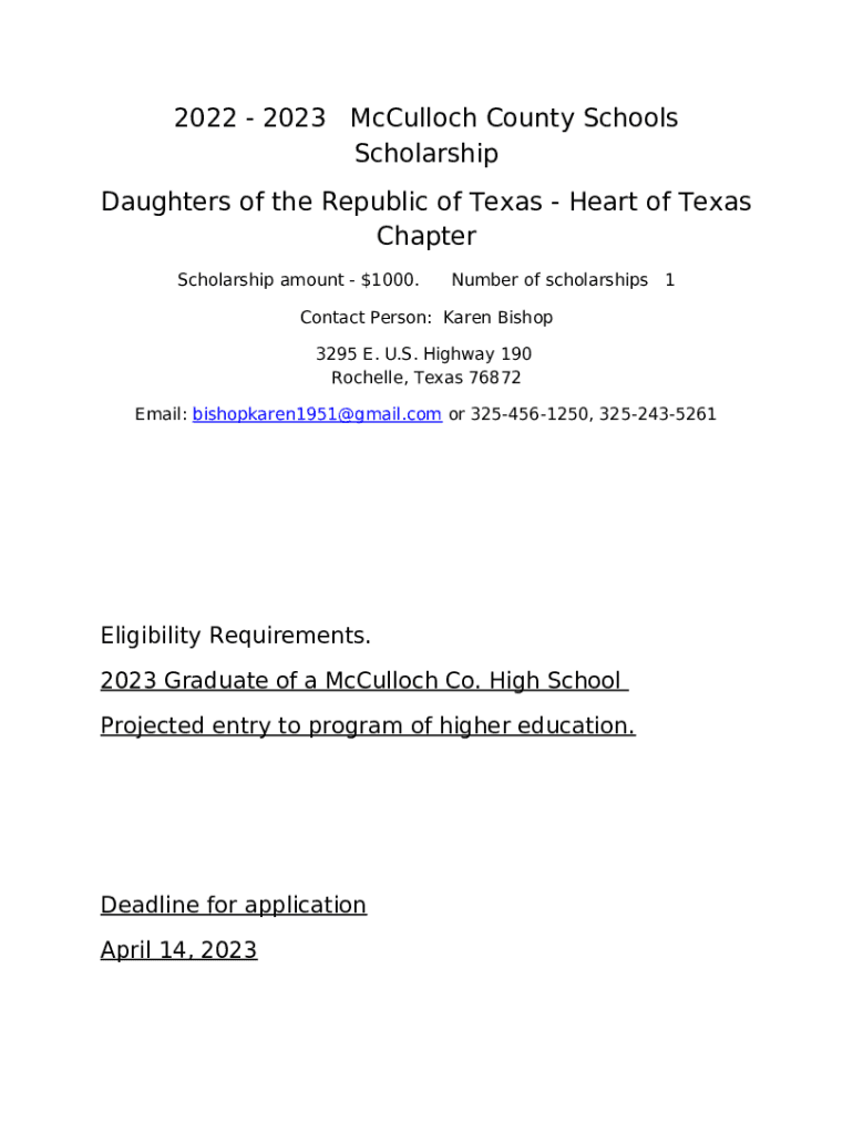 Instructions for the form Heart of Texas Scholarship Application 2023 - Connect Suite