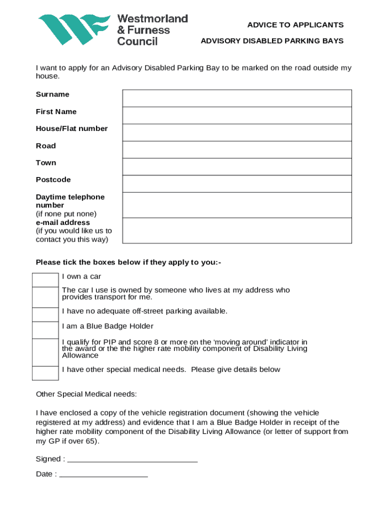 Frequently asked questions about the form Apply for a Disabled Parking Bay - Glasgow City Council