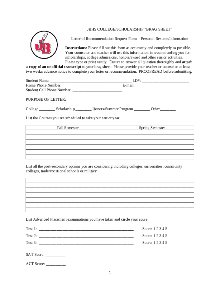 Frequently asked questions about the form 1 JBHS COLLEGE/SCHOLARSHIP BRAG SHEET Letter ...