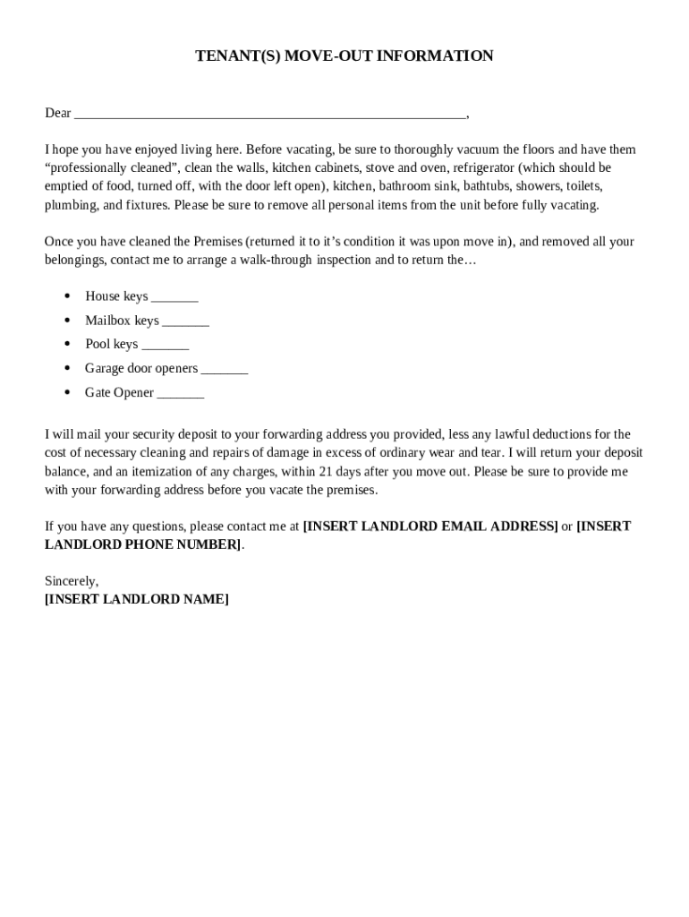 Template Tenant Move Out Ination. Real Estate Rental Agreement instructions
