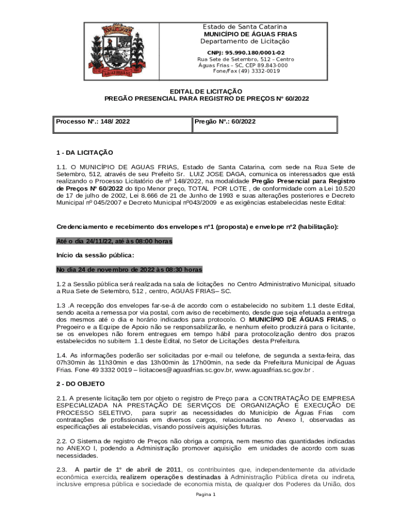 Lei Orgnica de guas Frias - SC template instructions
