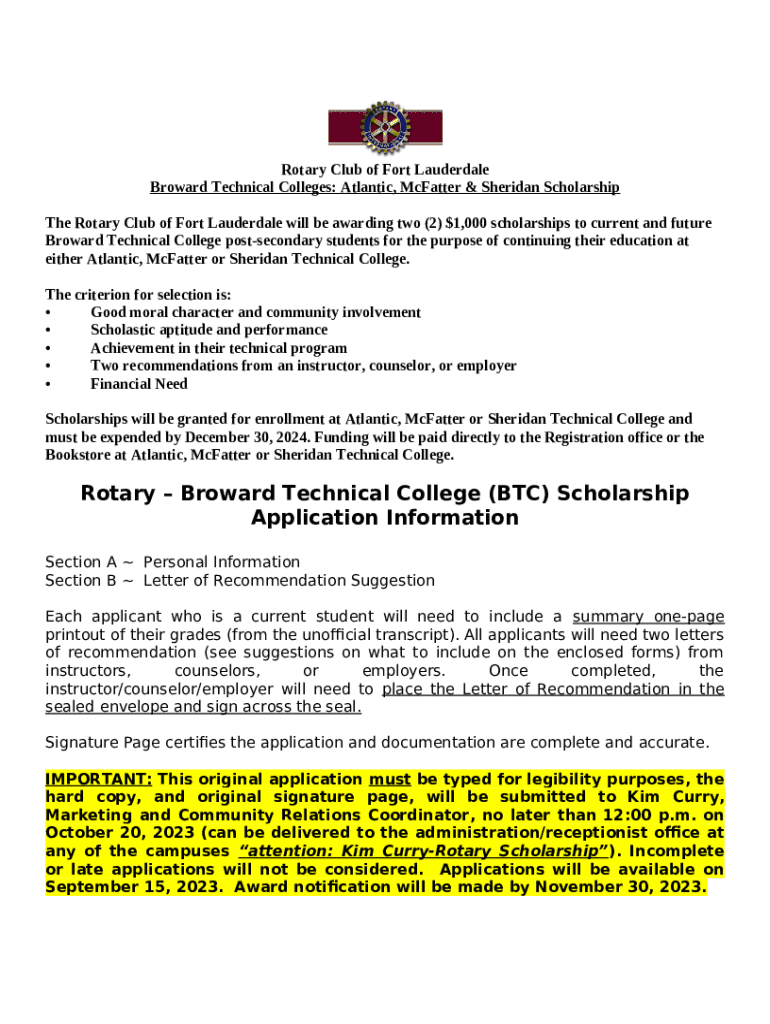Template Rotary Club of Fort Lauderdale Scholarship Application instructions