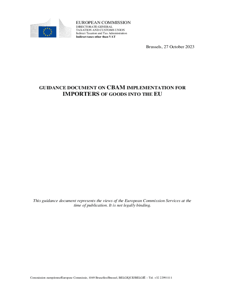 Indirect taxes other than VAT Brussels, 27 October 2023GUIDANCE DOCUMENT ON CBA IMPLEMENTATION