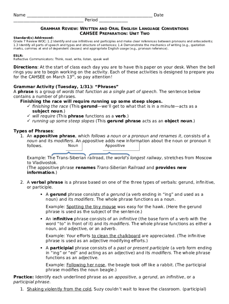 Instructions for the Name DateGrammar Review: Written and Oral English form