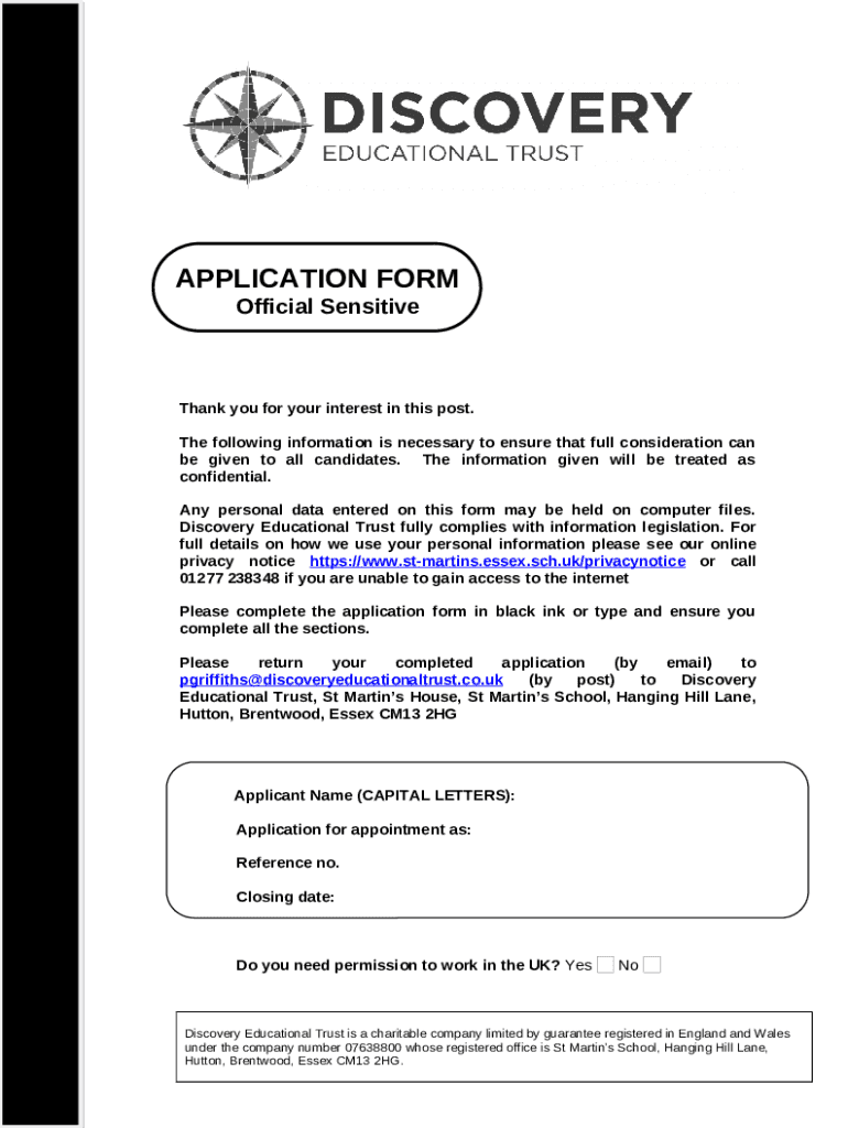 The Applicant Surname (CAPITAL LETTERS): - Chase High School is a Word document needed to be submitted to the required address in order to provide certain information. It must be completed and signed, which can be done manually in hard copy, or by using a particular solution like PDFfiller. It lets you complete any PDF or Word document directly from your browser (no software requred), customize it depending on your purposes and put a legally-binding electronic signature. Right after completion, you can send the Applicant Surname (CAPITAL LETTERS): - Chase High School to the appropriate recipient, or multiple ones via email or fax. The template is printable too thanks to PDFfiller feature and options proposed for printing out adjustment. Both in digital and in hard copy, your form will have got organized and professional outlook. You may also turn it into a template to use later, there's no need to create a new blank form again. All that needed is to edit the ready document.