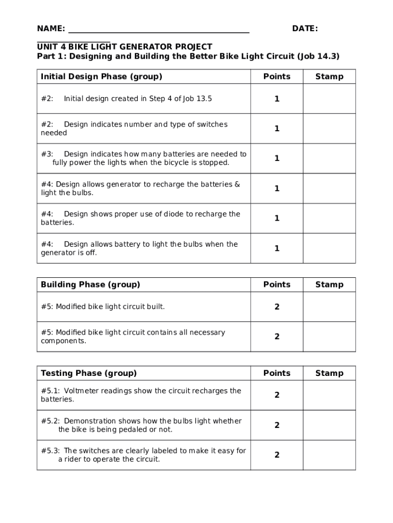 Instructions for the Stationary Bike Generator System (Drive Train) form