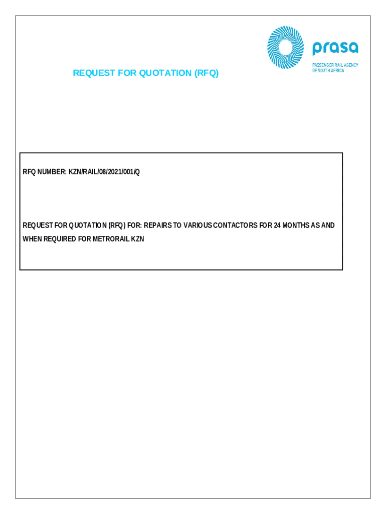 REQUEST FOR QUOTATION (RFQ) FOR: REPAIRS TO VARIOUS CONTACTORS FOR 24 MONTHS AS AND WHEN REQUIRED FOR METRORAIL KZN template instructions