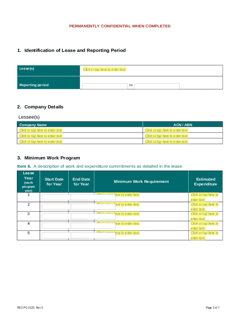 - If you think this is not enough for you, choose additional security features you like then. They're able to set verification for recipients, for example, request a photo or password. PDFfiller also offers specific folders where you can put your - Retention Lease Annual Assessment Report (Available on Department Website). Draft Exploration Permit AAR template reviewed by Policy Team and out for industry consultation fillable template and secure them with a password.